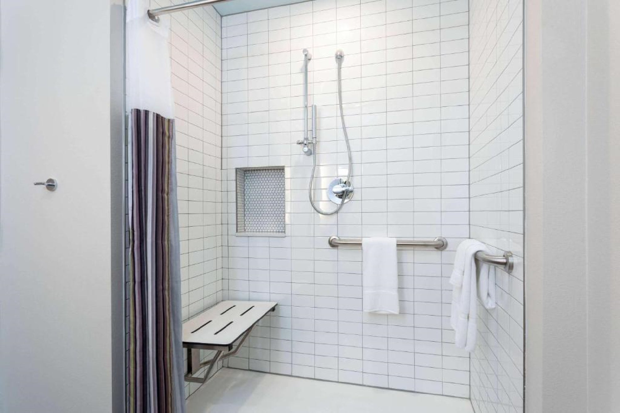 The property offers accessible amenities including a business center, fitness center, front desk, pool, public entrance, parking (including van parking), elevators, and guestrooms with 32" doorways. Accessible routes connect key areas such as guestrooms, parking, meeting spaces, and facilities. Meeting rooms are wheelchair accessible, with assistive listening devices available upon request. Service animals are welcome, staff are trained to assist guests with disabilities, and TTY devices and closed-caption TVs are provided. Please contact the hotel for specific accessible needs to ensure the hotel will be able to meet your requirements.
